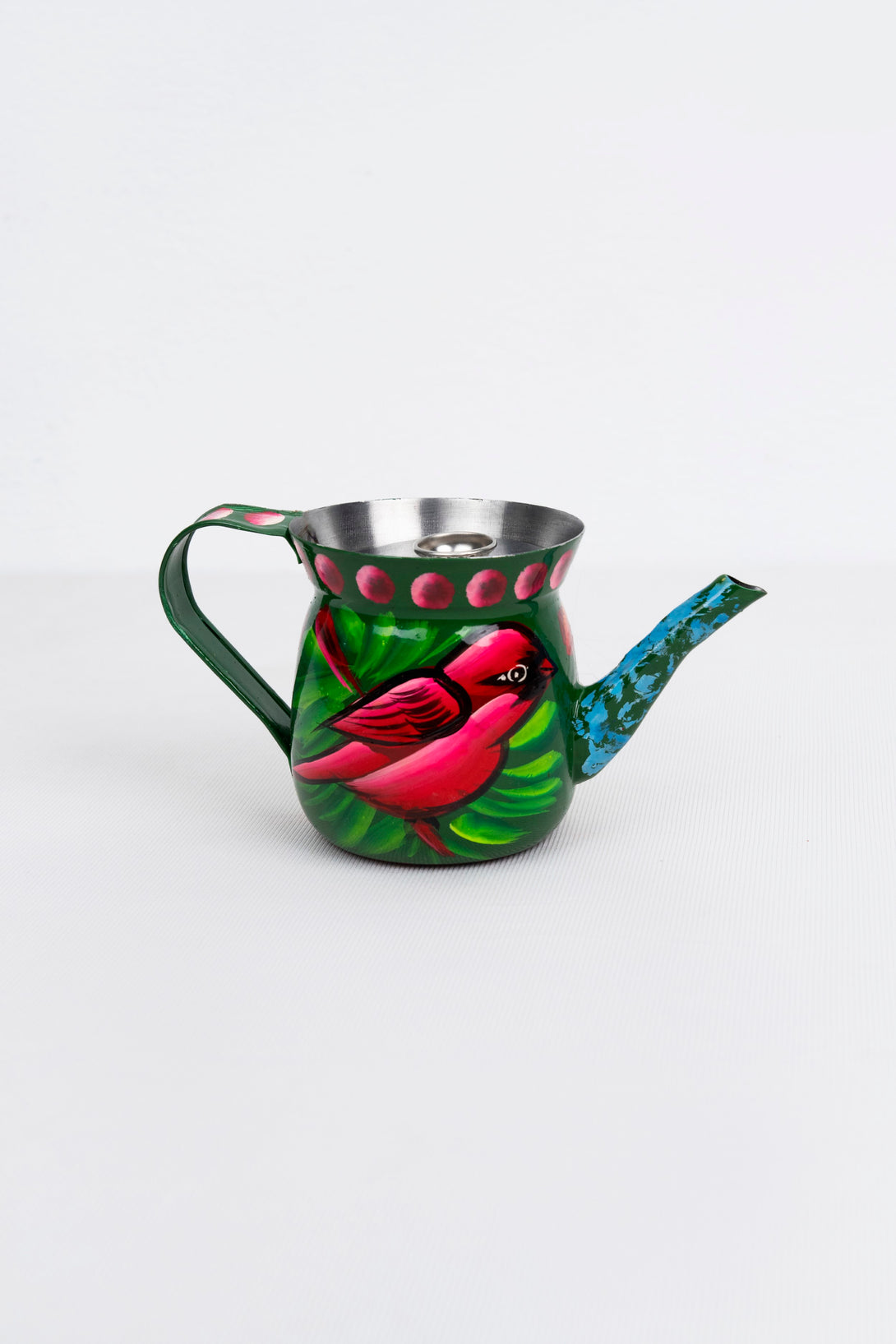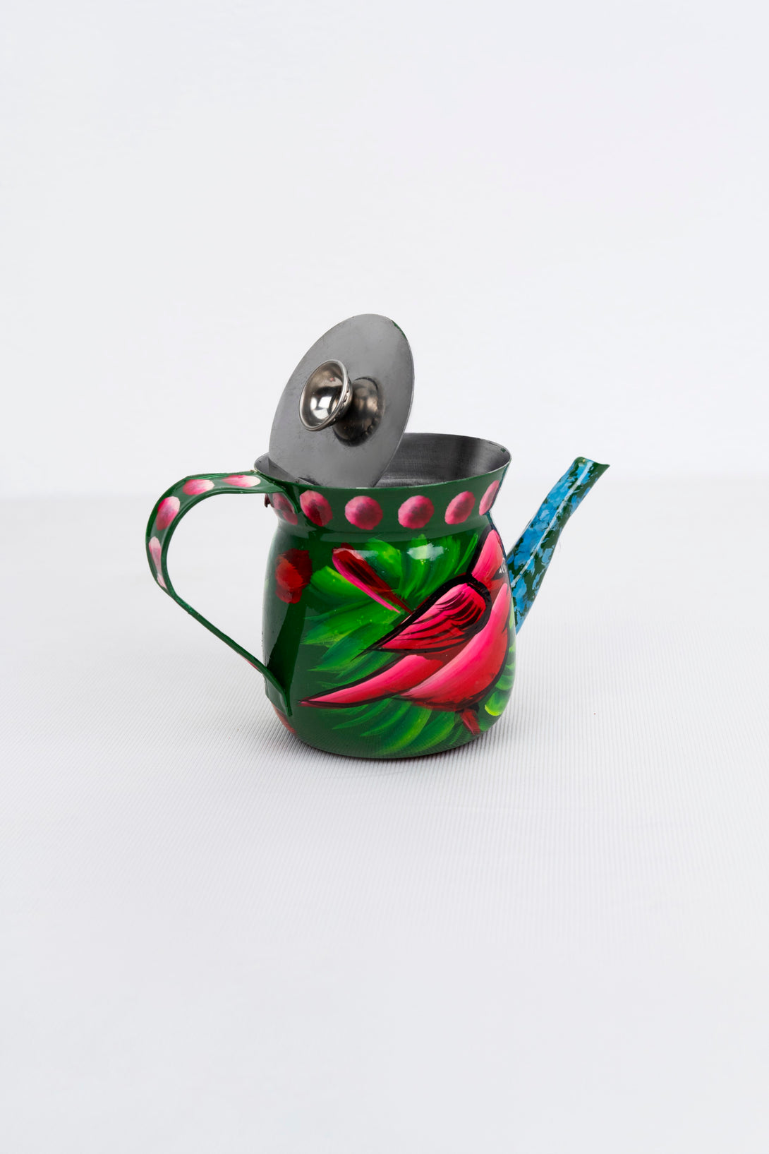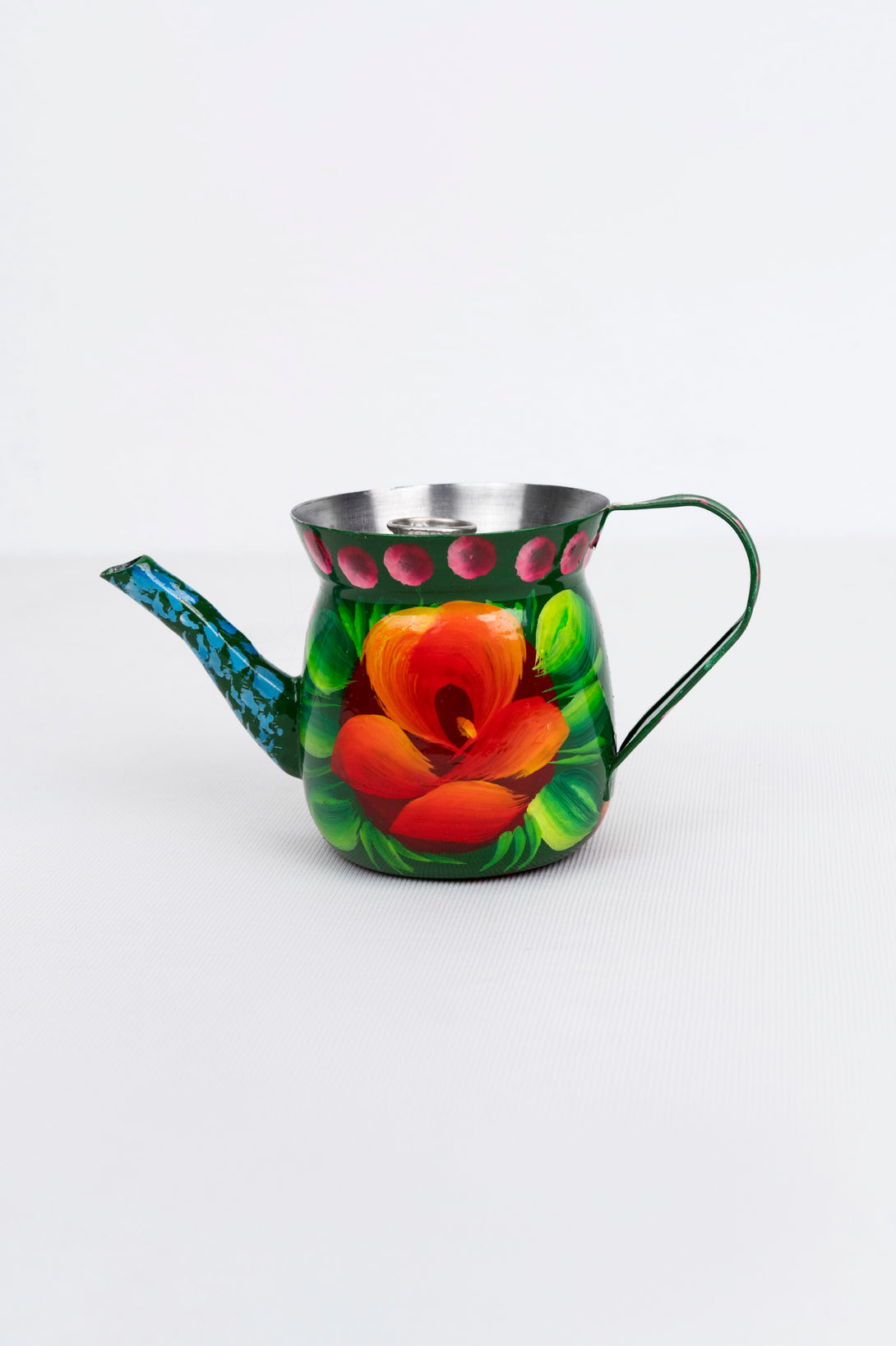 Brighten your kitchen or living space with this exquisite hand-painted kettle tea pot. Adorned with a lively array of multi-colored floral patterns and intricate details, this piece is a testament to traditional artistry. Perfect for serving tea or simply as a captivating decorative item, it adds a cheerful and artistic touch to any home.