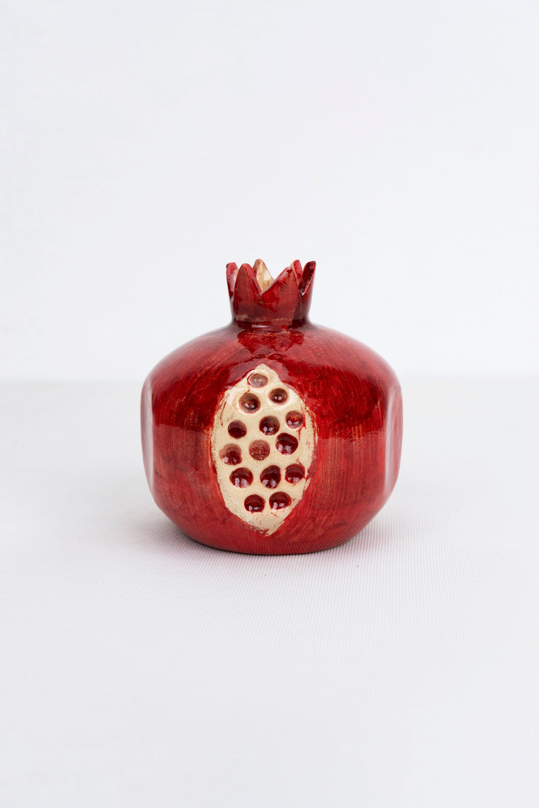 This vibrant red,Blue and Green ceramic pomegranate is a symbol of abundance and prosperity. Handcrafted with a glossy finish, it features a carved seed section revealing a natural beige contrast. Perfect as a statement décor piece for your living space or as a thoughtful gift.