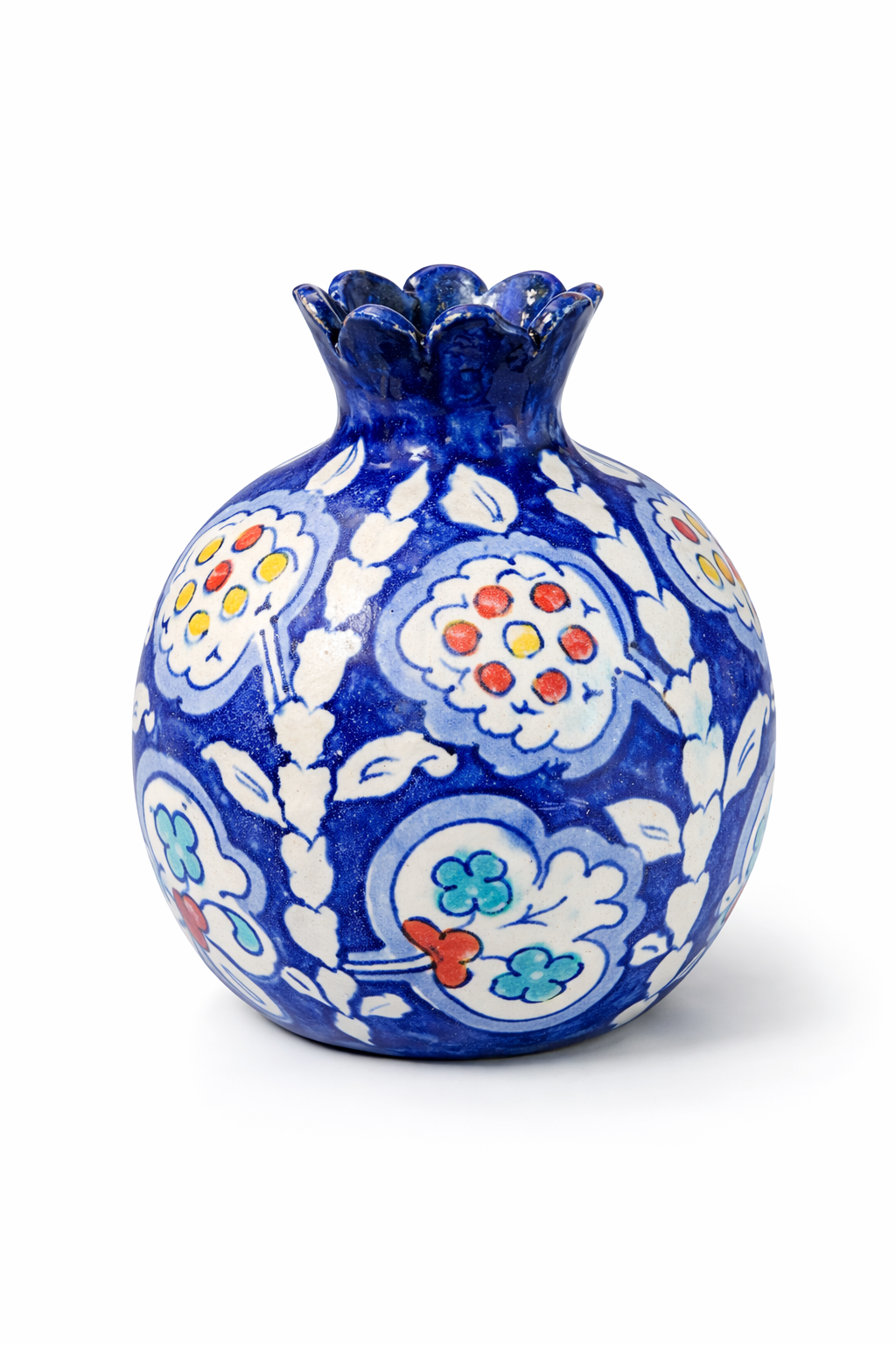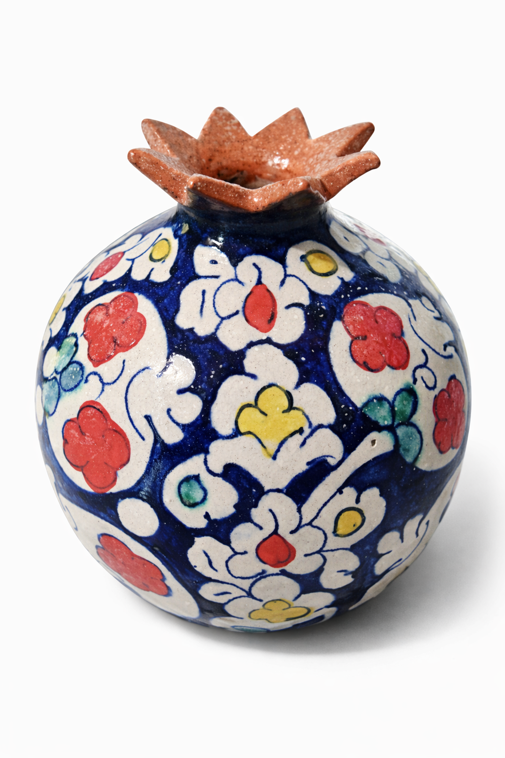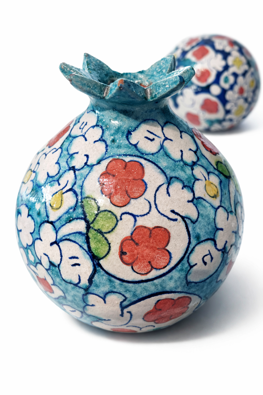 Technique: Hand-shaped, hand-painted, kiln-fired ceramic