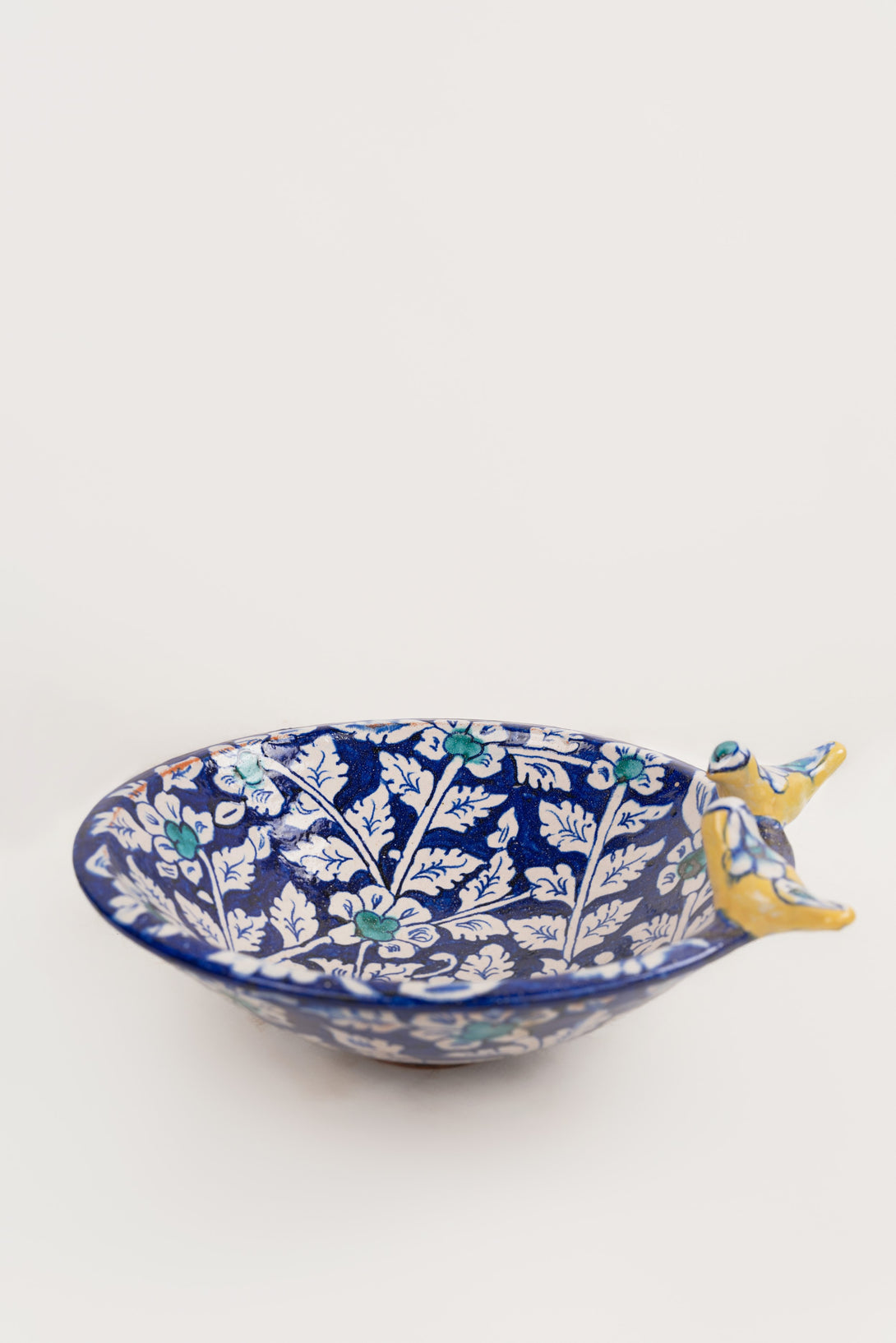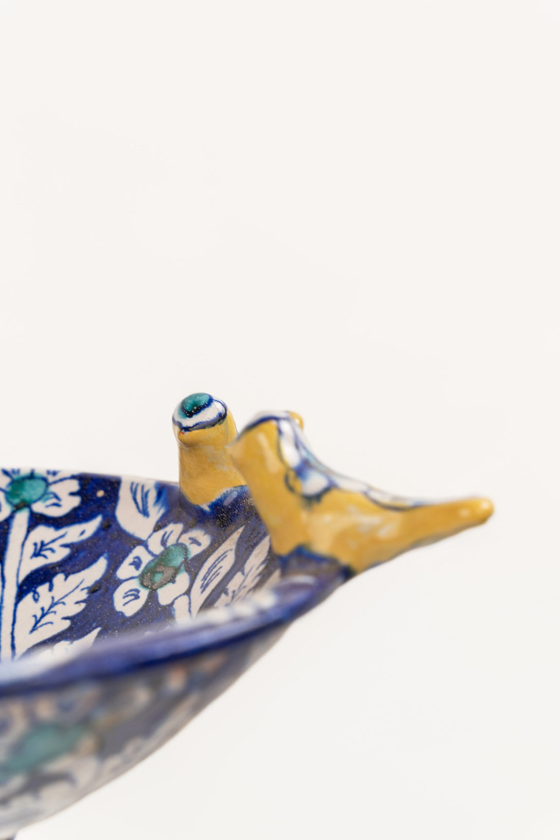 These captivating footed bowls are meticulously hand-painted by skilled artisans in Lahore, each piece radiating vibrant colors and intricate designs inspired by nature. Crowned with charming hand-sculpted birds perched on the rim, these bowls serve as elegant decorative accents, unique display pieces for floating candles or collectibles, or inviting bird baths for your garden or indoor spaces.
