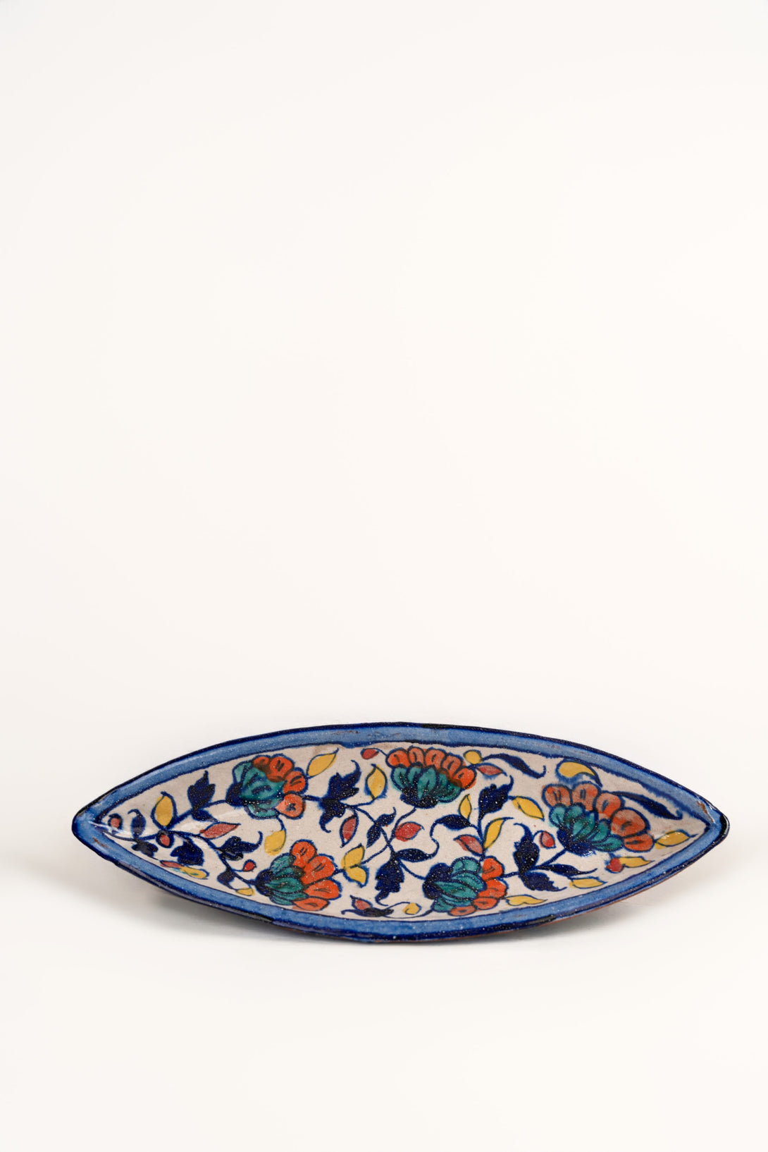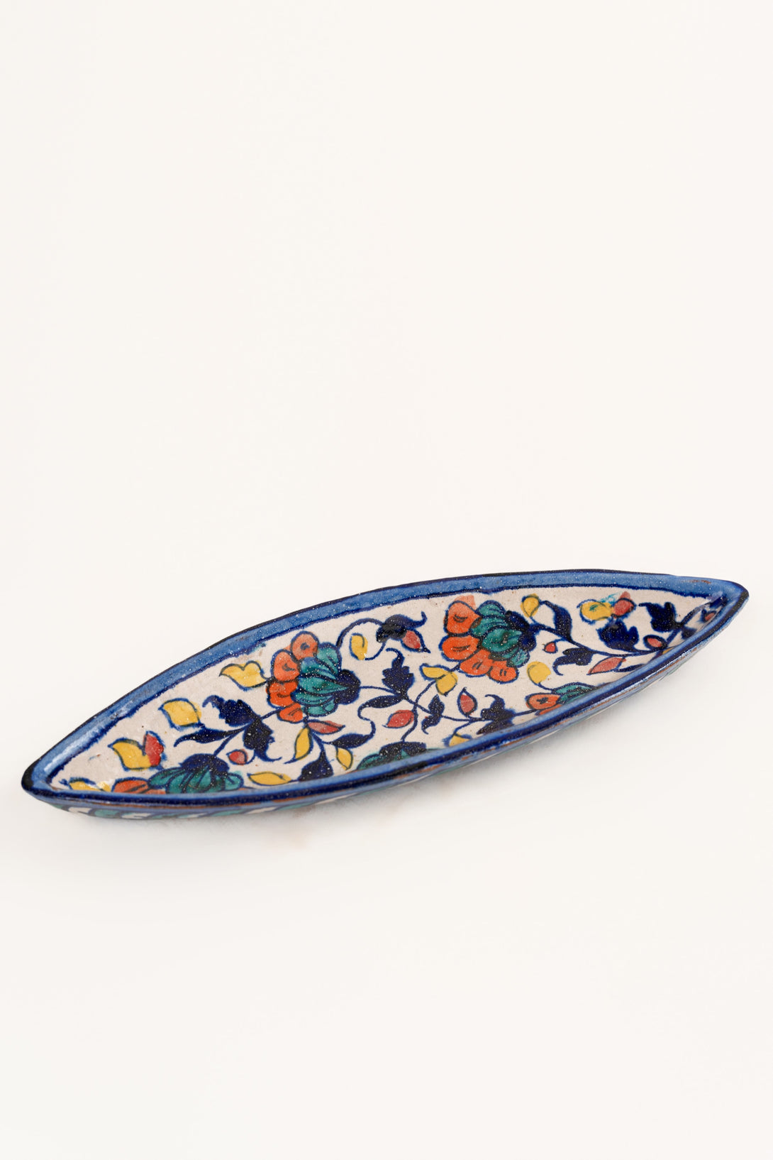Discover our stunning set of four unique, leaf-shaped dishes, meticulously hand-painted by skilled artisans in Lahore. Each piece showcases an elegant design with a lively palette of rich blue, bright yellow, and soothing turquoise floral patterns. These versatile dishes are perfect for serving small snacks, organizing essentials, or simply as captivating decorative accents, blending traditional artistry with practical use.