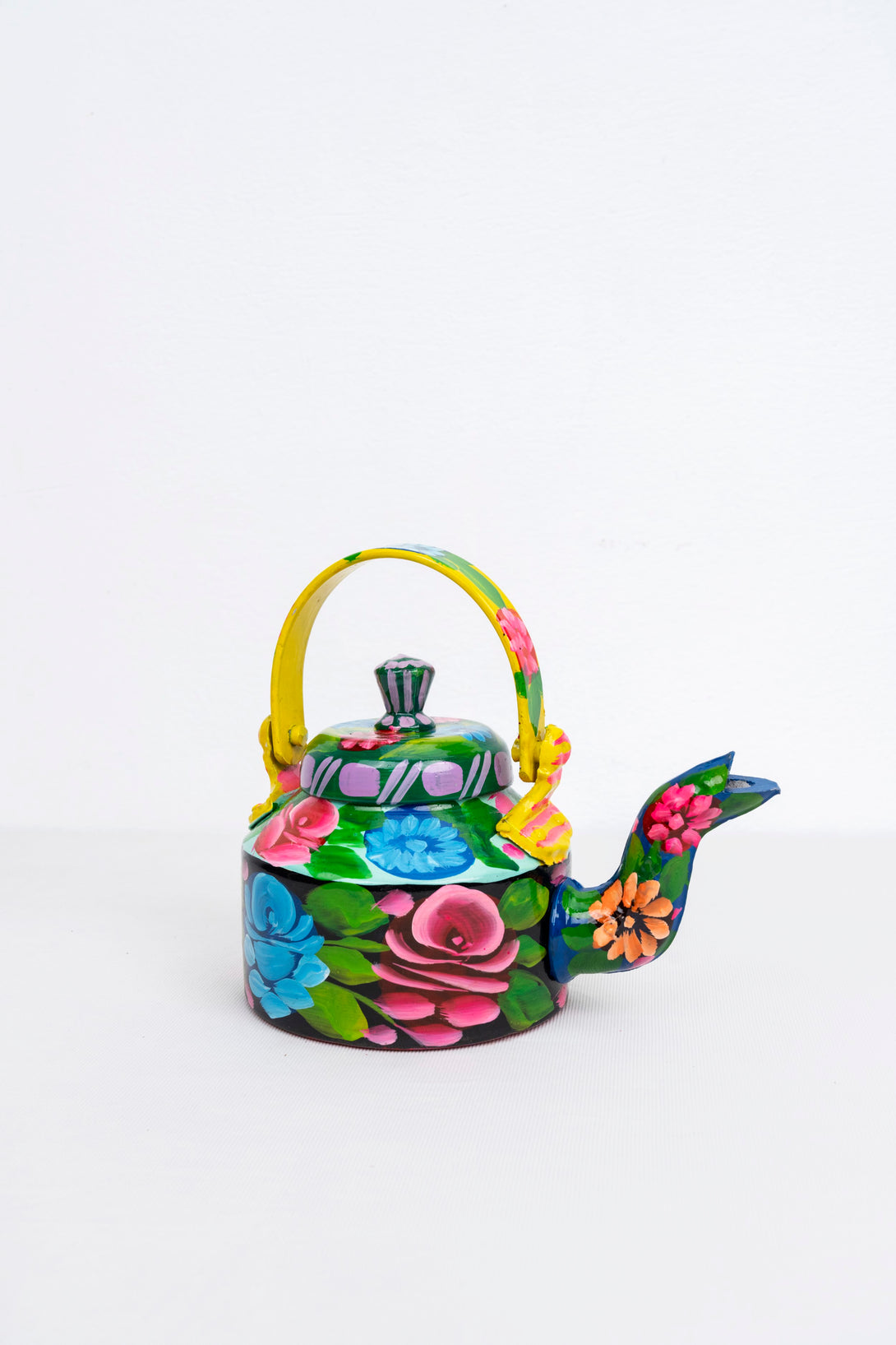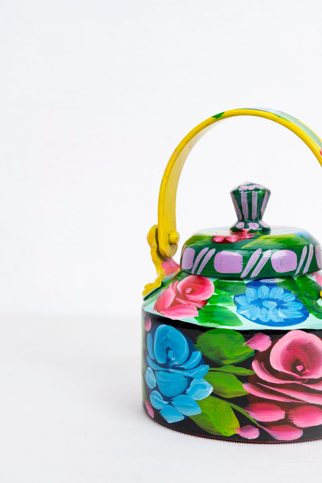 Brighten your kitchen or living space with this exquisite hand-painted kettle tea pot. Adorned with a lively array of multi-colored floral patterns and intricate details, this piece is a testament to traditional artistry. Perfect for serving tea or simply as a captivating decorative item, it adds a cheerful and artistic touch to any home.