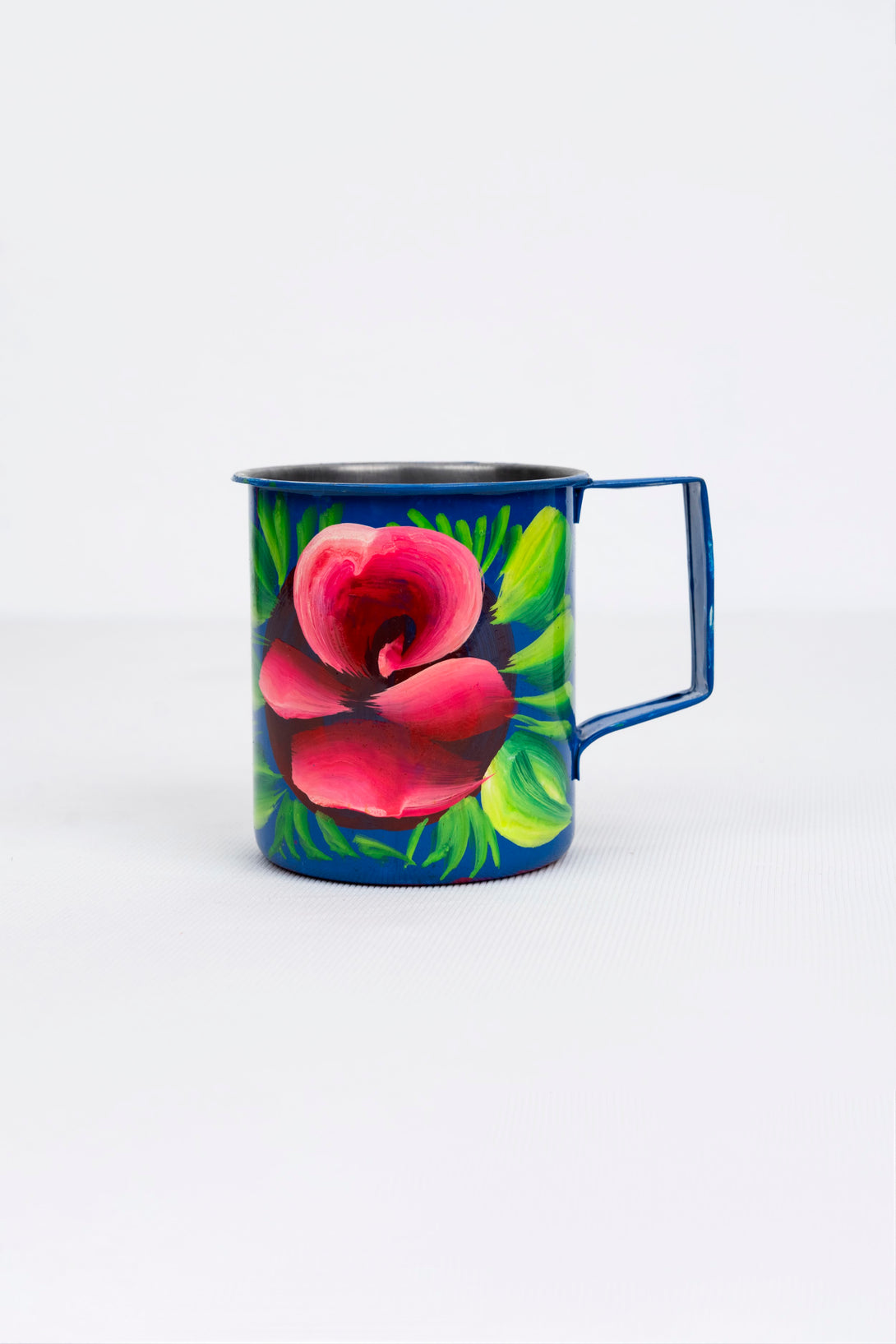 Add a touch of vibrant artistry to your space with our charming Hand-Painted Floral Mini Mug. This delightful mug features a bold and beautiful hand-painted rose design in shades of pink and green against a dark background, making it a perfect decorative accent for any desk, shelf, or kitchen. Each piece is lovingly crafted and painted by hand, showcasing unique brushstrokes and an authentic artistic flair. It's an ideal gift for art lovers or anyone looking to infuse their home with color and character.