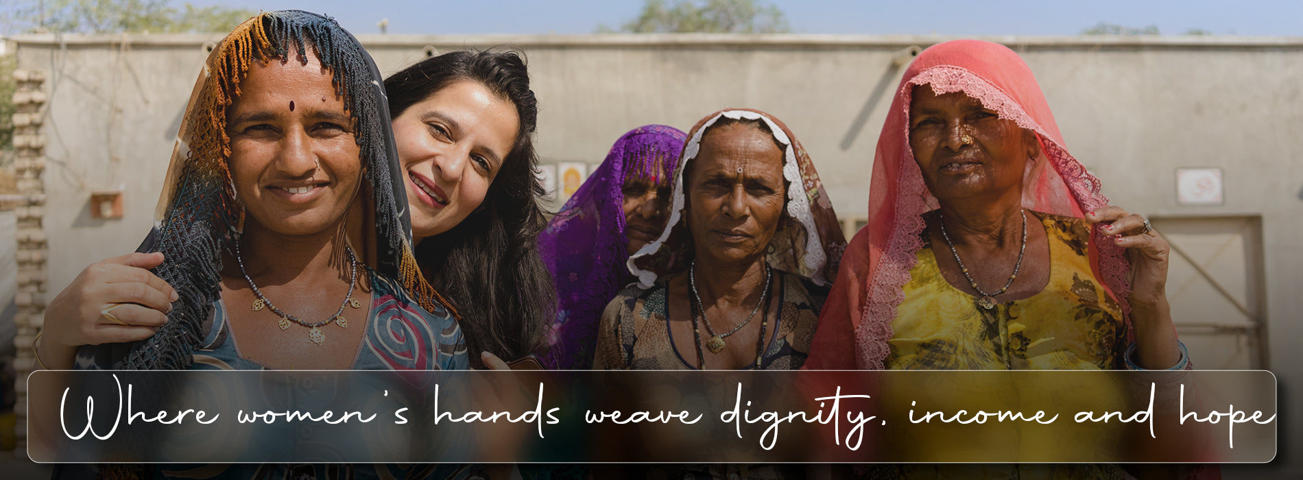 Ajrak hand-blocked by village women using vibrant natural dyes.